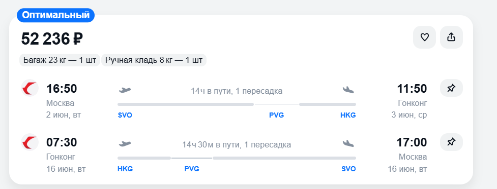 Рекомендуемый перелет