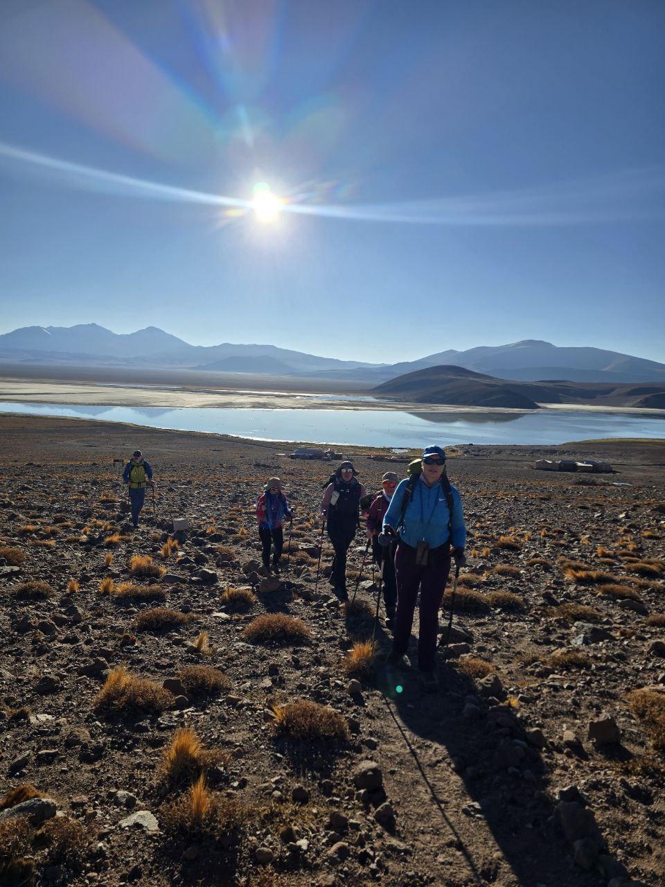 Позже нас порадовали не только фламинго на озере, но и местные «звери» — гуанака, похожие на лам. Вечером у нас было барбекю, а сегодня мы переезжаем к другой лагуне — Лагуне Верде.