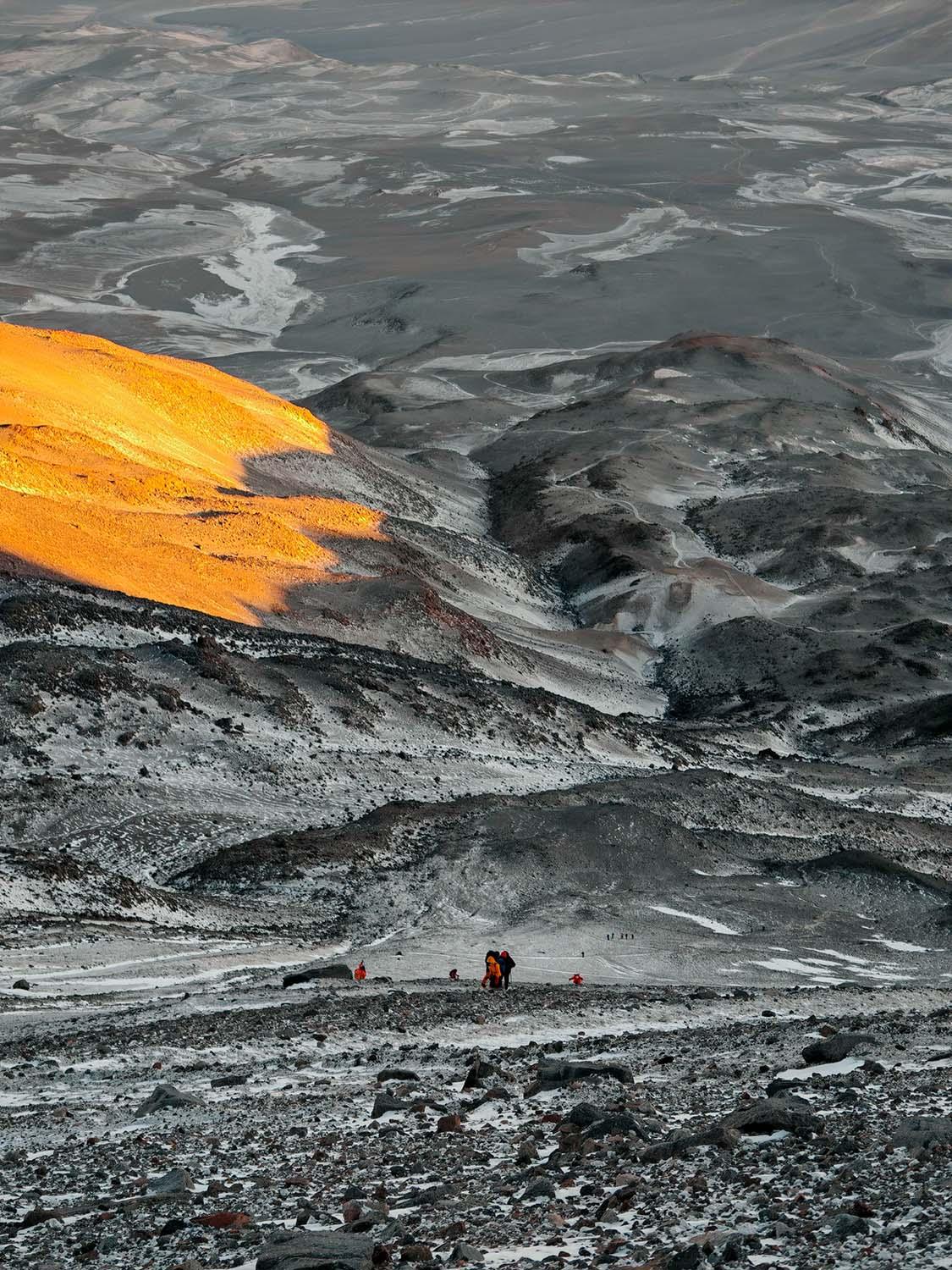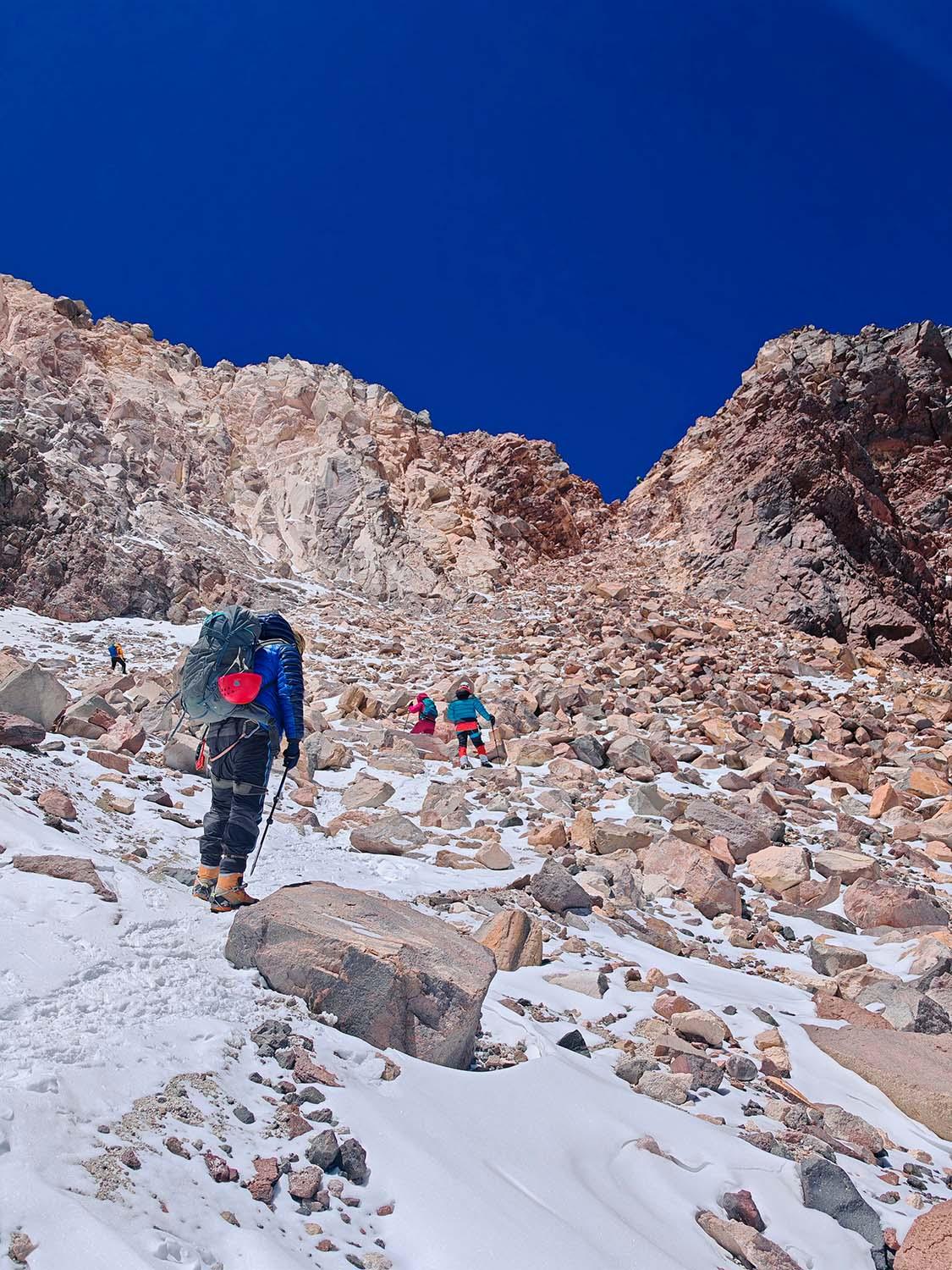 Охос-дель-Саладо — вершина непростая: сложность здесь скорее не техническая, а физическая, и это часто недооценивают. Рассуждают так: раз до 5800 м можно подняться на машине, то «дальше совсем чуть-чуть». Отчасти это правда, но оставшийся участок требует огромных затрат времени и сил.