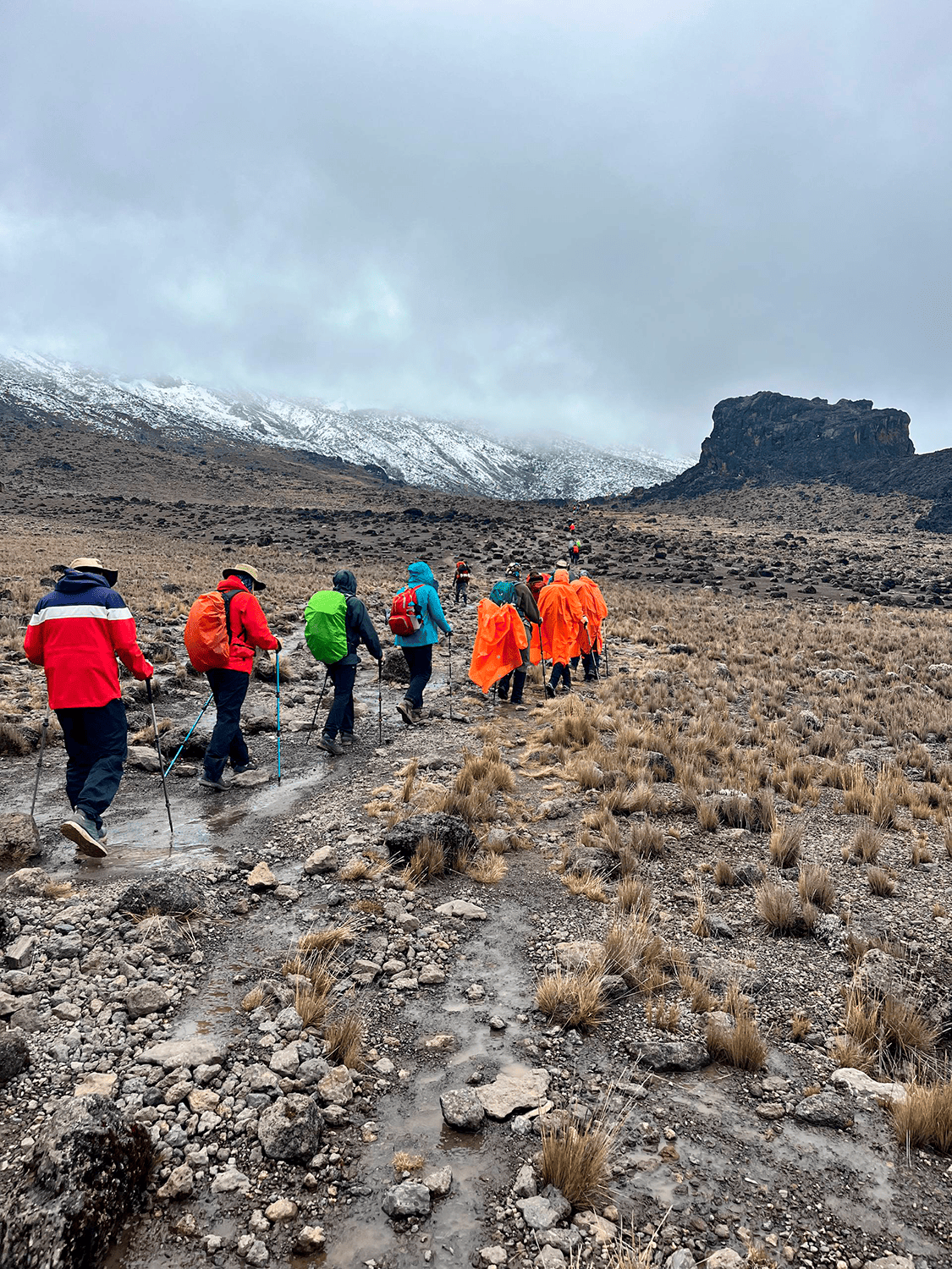 Акклиматизация проходит по плану: вся команда бодро шагает, несмотря на не самую благоприятную погоду. Держим темп, не забываем про простое правило Килиманджаро: «pole pole» — без рывков.