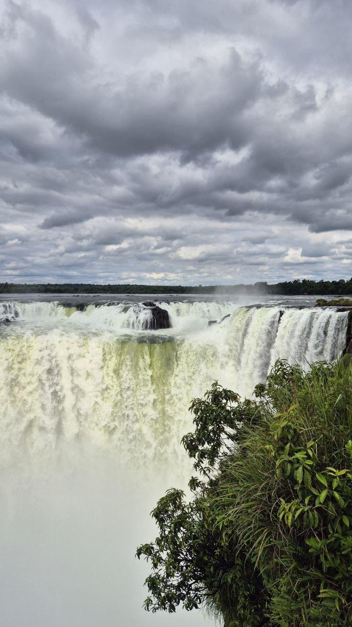 Любовались на Глотку Дьявола – самый мощный и впечатляющий участок водопадов Игуасу на границе Аргентины и Бразилии. Подковообразный каньон шириной около 150 м и высотой около 80 м, куда одновременно обрушивается огромная масса воды – создаётся ощущение, что вода буквально «проваливается» в бездну. Это центральная и самая зрелищная точка всего комплекса Игуасу, ради которой многие сюда и едут.