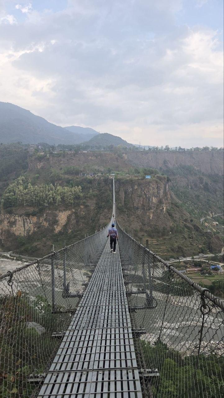 Перед выездом в Катманду мы заглянули в деревню Лупра. Прошли через смотровые площадки — погода стояла облачная, но даже сквозь дымку пейзажи были по-своему красивы и атмосферны. Местные собаки, верные своей традиции, неотступно сопровождали нас в прогулке. Мы побродили по деревне, прочувствовали её неспешный уклад — и отправились в Покхару. По дороге сделали остановку у одного из самых длинных и высоких пешеходных мостов в мире — впечатляющее сооружение, которое невозможно проехать мимо. И вот наконец Покхара: город встретил нас теплом, и мы с удовольствием погрузились в заслуженный отдых.