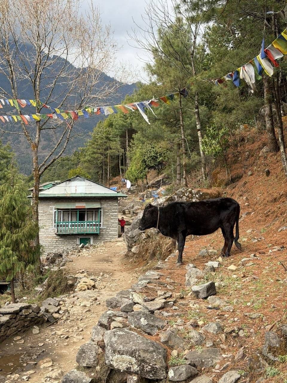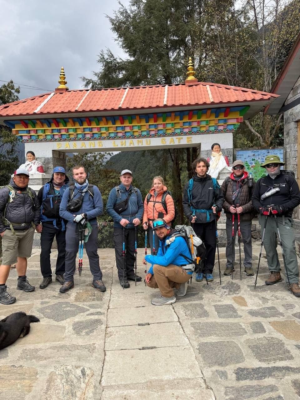 Дальше — спуск до Пхакдинга (Phakding), и, по словам участников, получился он просто в удовольствие: живописная тропа вдоль реки Дудх-Коси, подвесные мосты, украшенные молитвенными флажками, свежий горный воздух. Классическое начало эверестовского маршрута, которое моментально настраивает на нужную волну.
