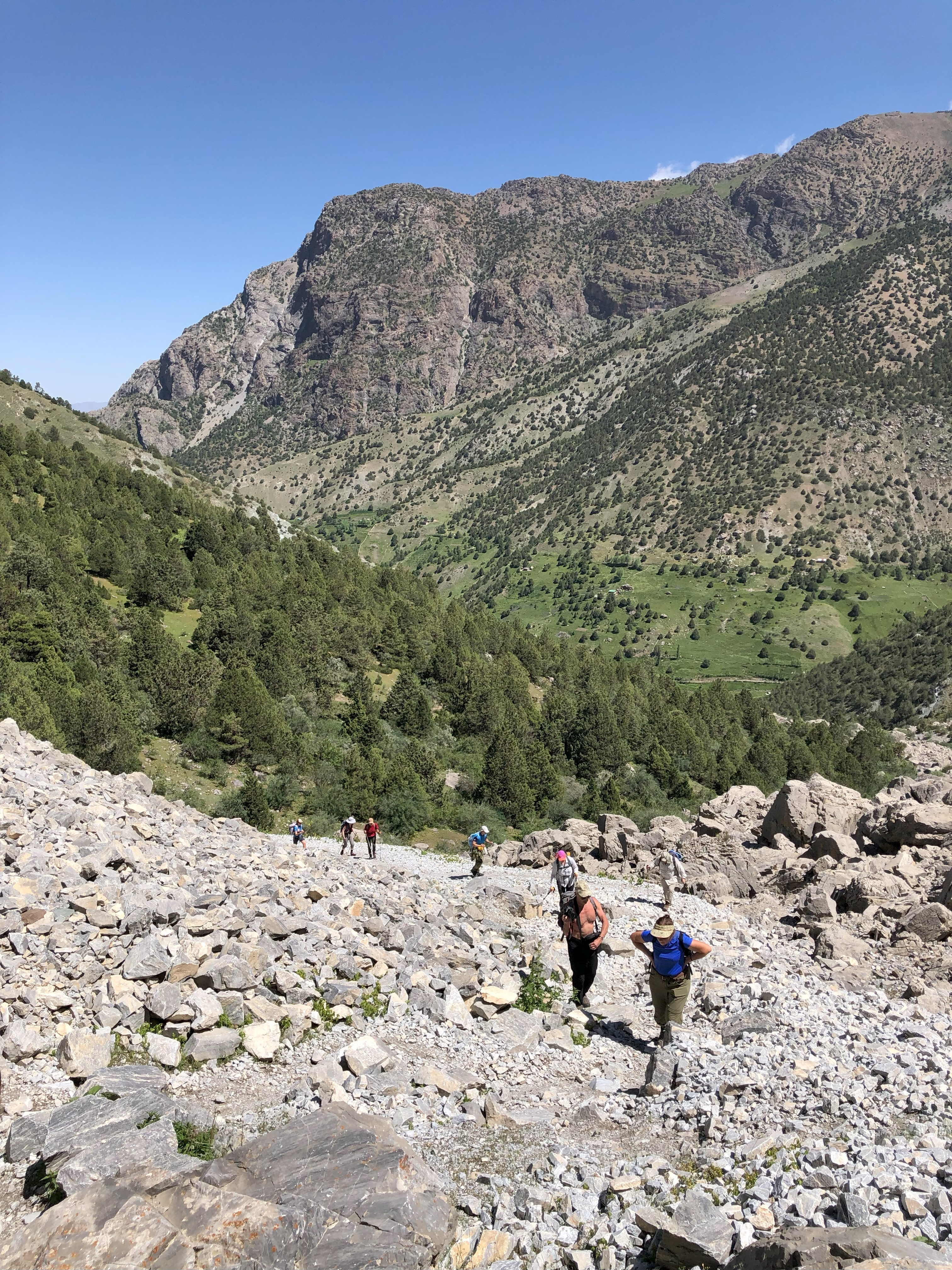 После раннего завтрака, проходим последние километры маршрута по Фанским горам до альплагеря Вертикаль Алаудин.