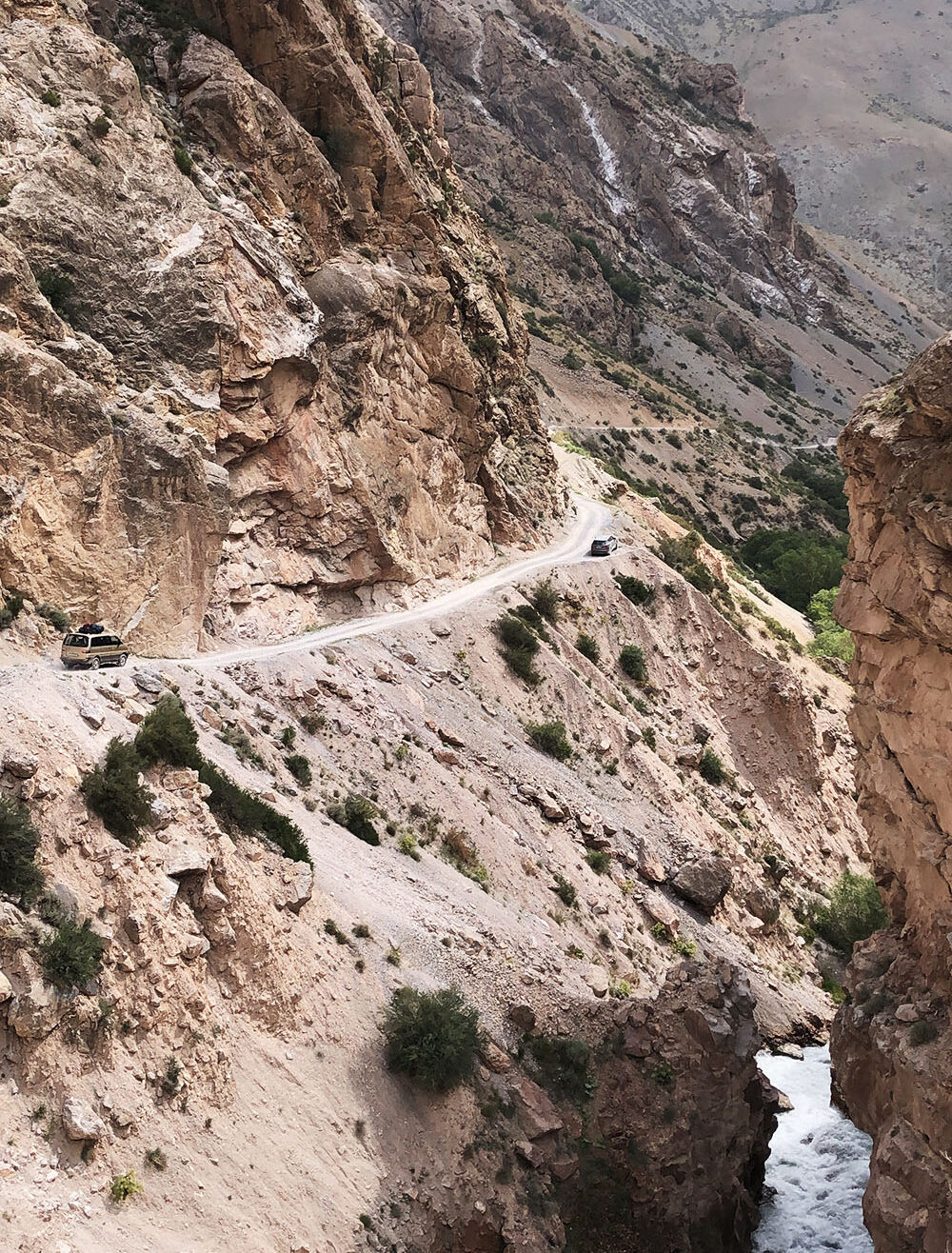 Грузимся во внедорожники и выезжаем в сторону границы. Дорога петляет по живописной долине реки Чапдара и выходит в узкое ущелье реки Фон.
