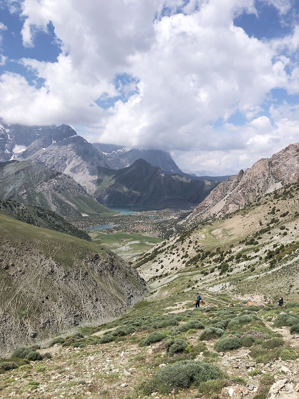 Сегодня мы выходим на преодоление ключевого перевала нашего маршрута и, возможно, самого живописного перевала в Фанских горах – Алаудинский. Технически он ходится не сложно, но большая высота и протяженность потребуют от нас усилий и выдержки. С вершины откроется невероятный вид на долину Алаудинских озер и сразу 5 пятитысячников.